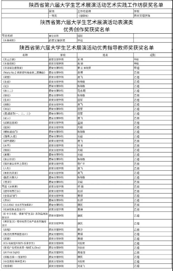 省教育厅组织专家对各高校上报节目、作品和案例进行了认真评选,我校学生在此次活动中,获得一等奖12个,二等奖29个,三等奖41个,我校教师在此次活动中,获得优秀指导教师45个。以下是我校获奖艺术作品汇总名单